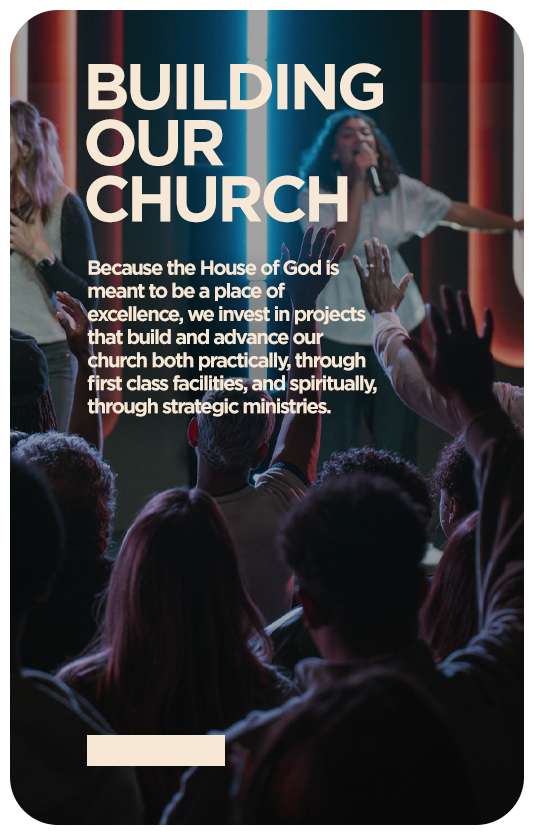 La finalización de nuestro Global Hub y Next Generation Building en Houston Levee es una de las iniciativas más significativas en la historia de nuestra iglesia. Con más de 50,000 pies cuadrados de nuevo espacio, este proyecto posiciona a nuestra iglesia para el crecimiento futuro dentro de la ciudad de Memphis y la expansión de The Life Church alrededor del mundo. Esta es una necesidad urgente para que nuestra iglesia cumpla el mandato que Dios nos ha dado de multiplicarnos por toda la tierra y crear el espacio que necesitamos para seguir alcanzando a más familias y jóvenes en todo el Mid-South. Este costo es el objetivo aproximado restante de recaudación de fondos para el proyecto. Haz clic para obtener más información.