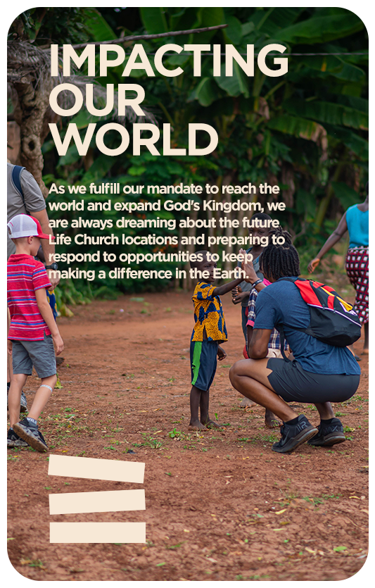 A medida que continuamos creciendo y alcanzando al mundo para llevar el mensaje de Jesús a los perdidos, siempre estamos evaluando más oportunidades para expandirnos añadiendo nuevas regiones, nuevas ubicaciones a regiones existentes y estableciendo permanencia en ciudades clave alrededor de la tierra. Algunas de las necesidades actuales incluyen: lanzar una segunda ubicación en nuestra región de New York, una segunda ubicación en nuestra región de Santiago, Chile y establecer permanencia en cualquiera de nuestras ubicaciones que son portátiles. Además, siempre estamos evaluando con oración más oportunidades inspiradas por Dios para lanzar ubicaciones de Life Church en nuevas partes del mundo.